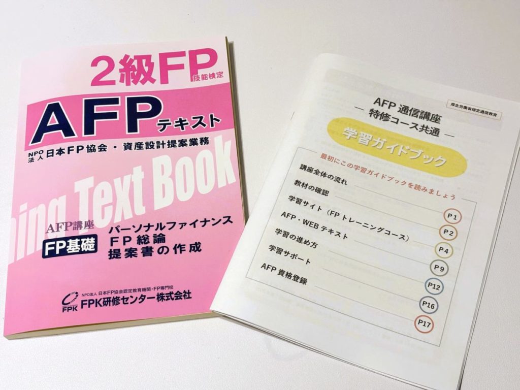 AFPテキストと学習ガイドブックだけ紙でもらえますが、講義動画はなく、教材は基本的にPDF形式。